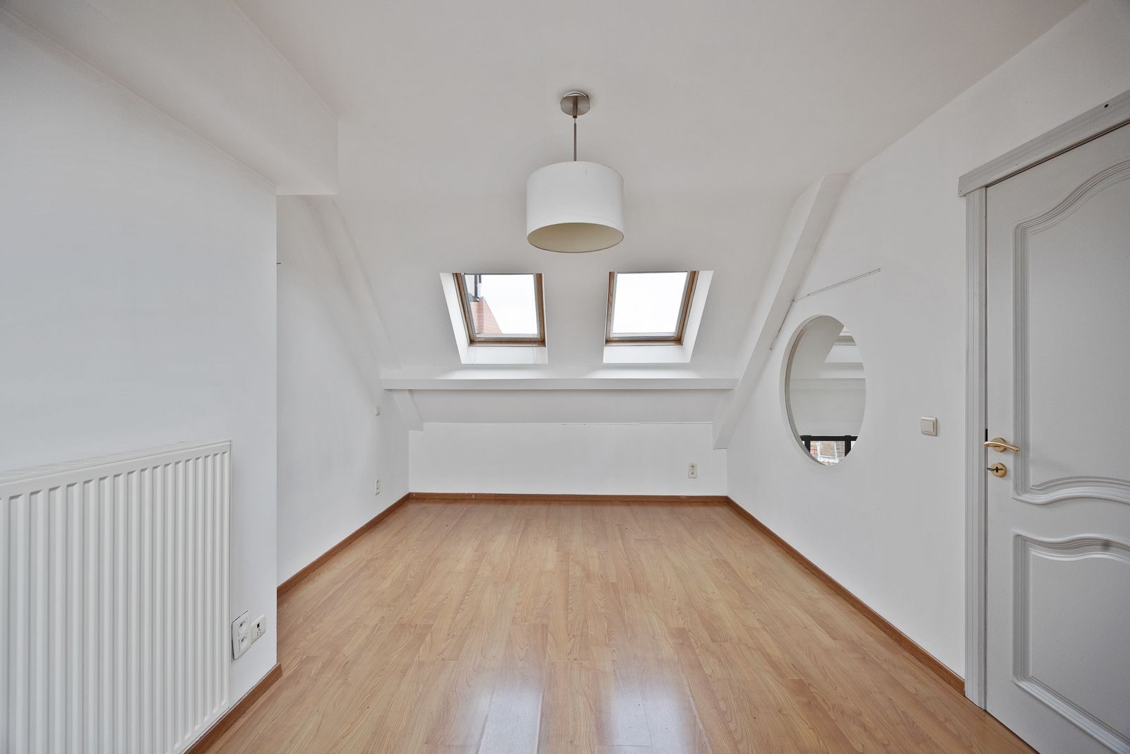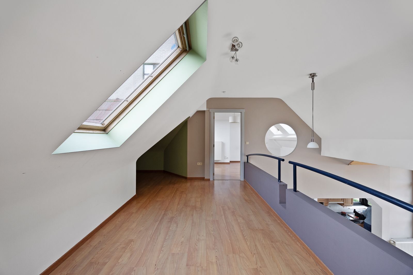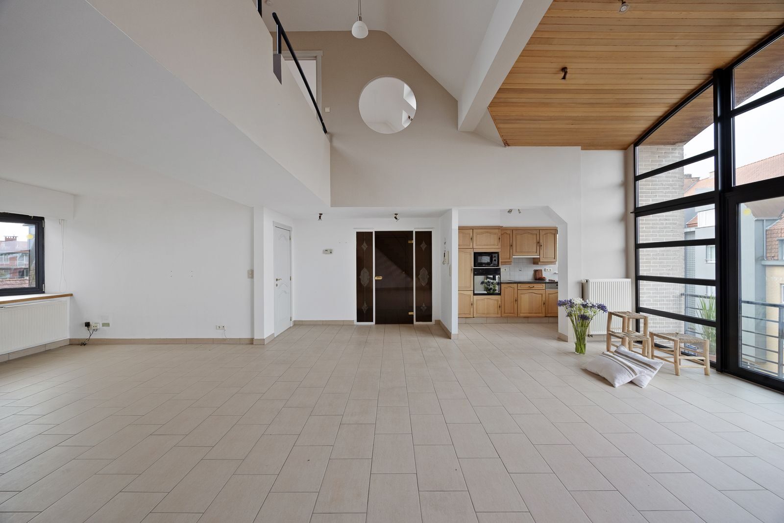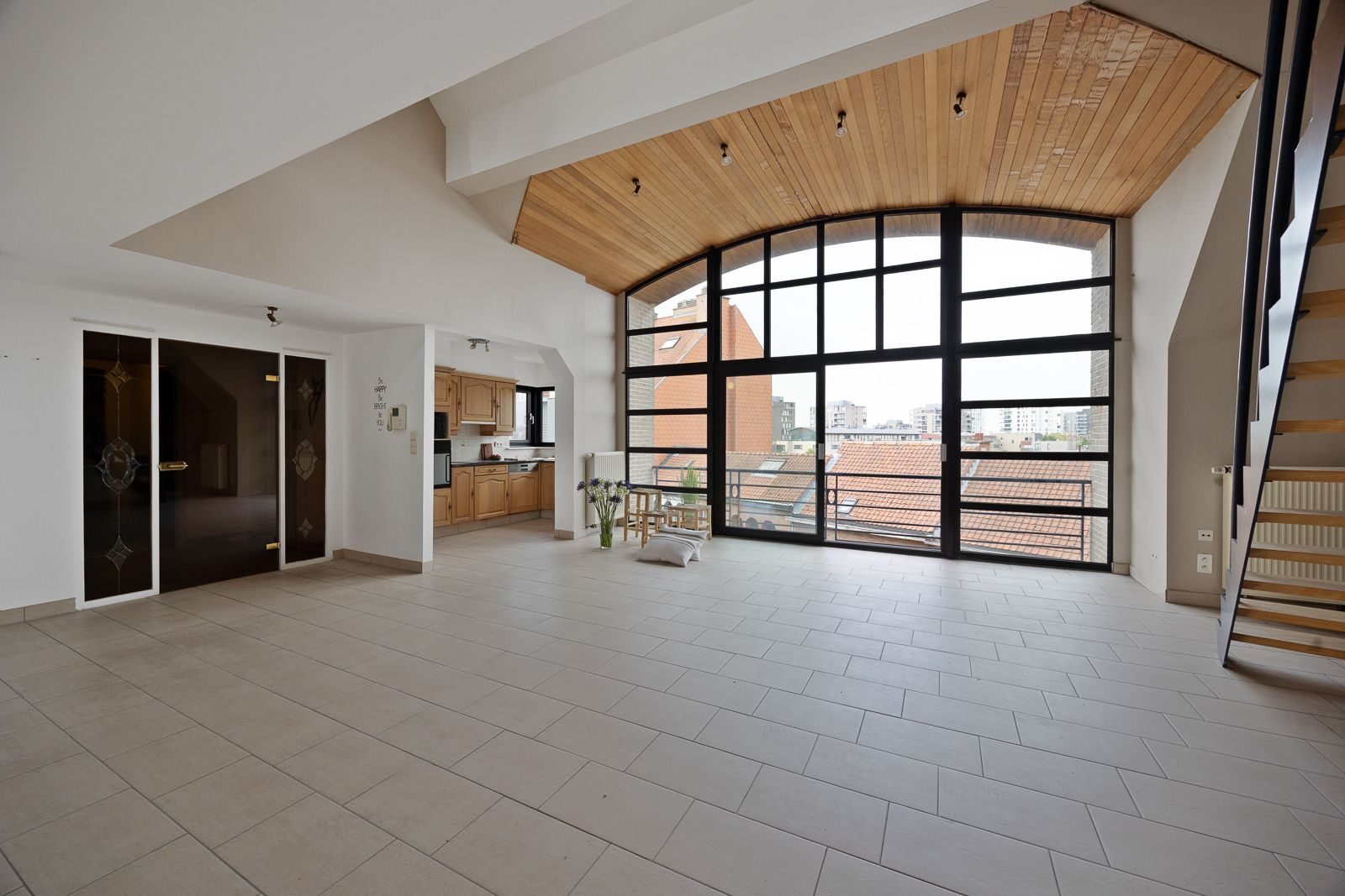 Op de derde en hoogste verdieping van een verzorgd gebouw bevindt zich dit zeer lichtrijk duplexappartement. Bij binnenkomst vind je een inkomhal met vestiairekast en gastentoilet. De ruime woonkamer baadt in het licht dankzij de grote ramen die uitgeven op een zuidgericht balkon. Het leefgedeelte sluit naadloos aan op de open, volledig ingerichte keuken. Aansluitend bevindt zich een eerste slaapkamer met eigen badkamer, waar ook aansluitingen voorzien zijn voor een wasmachine en droogkast.