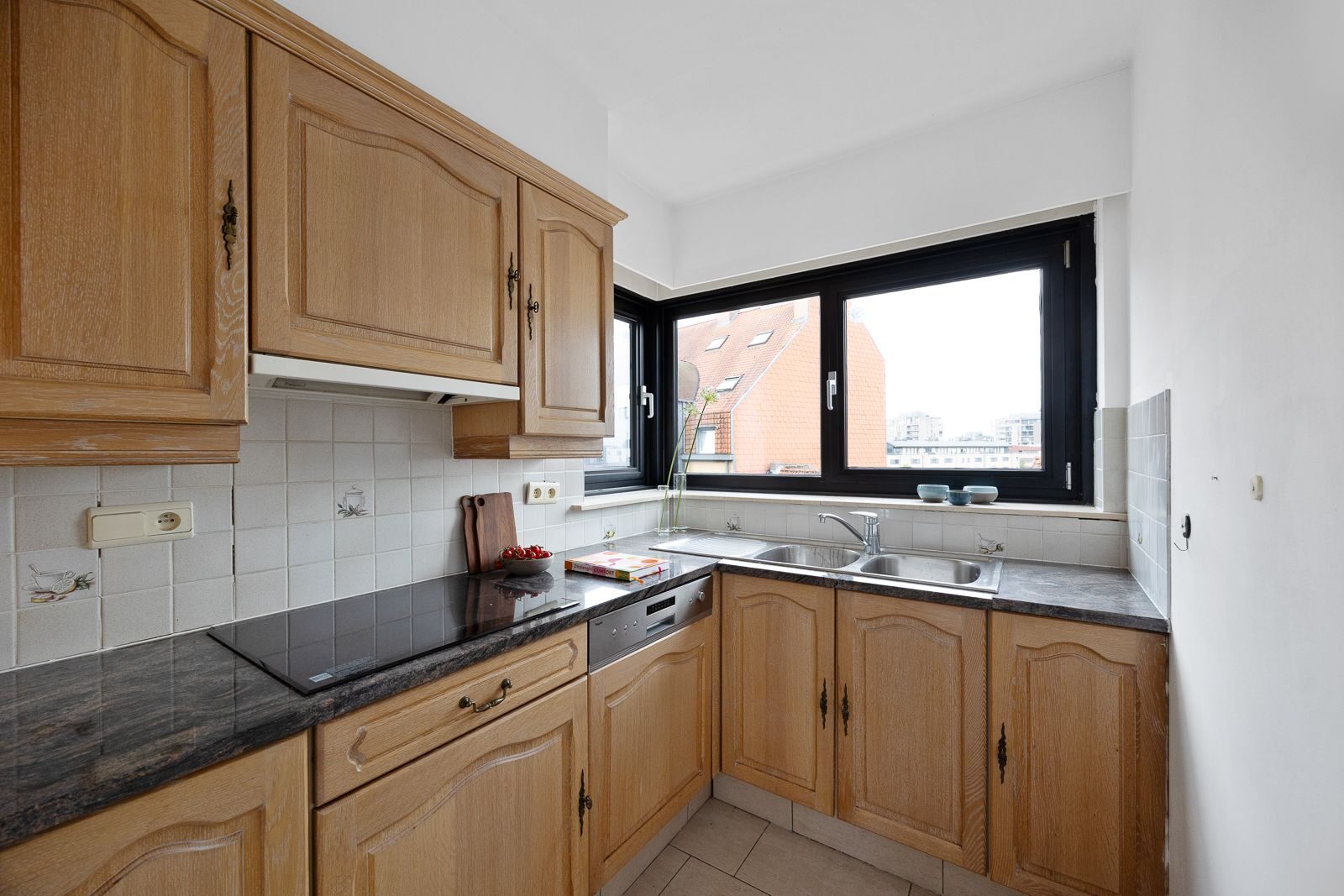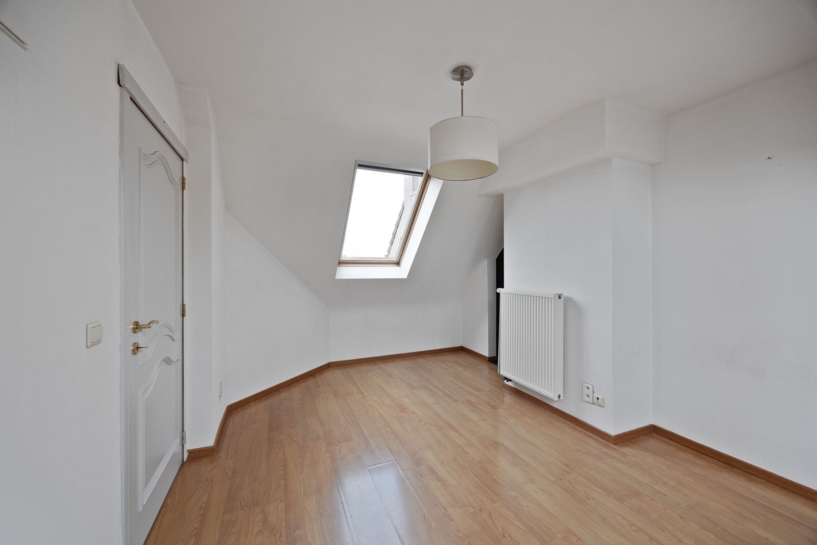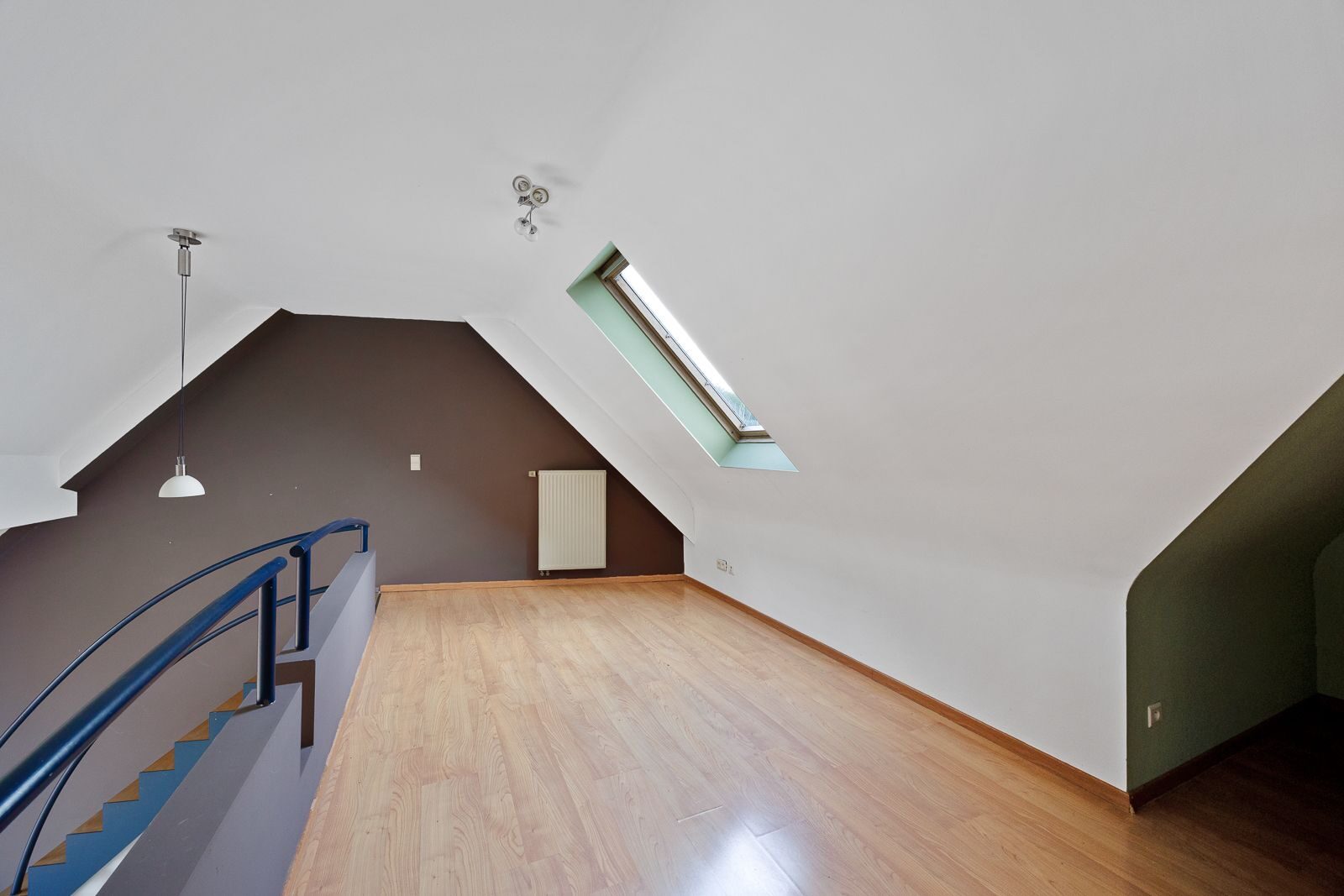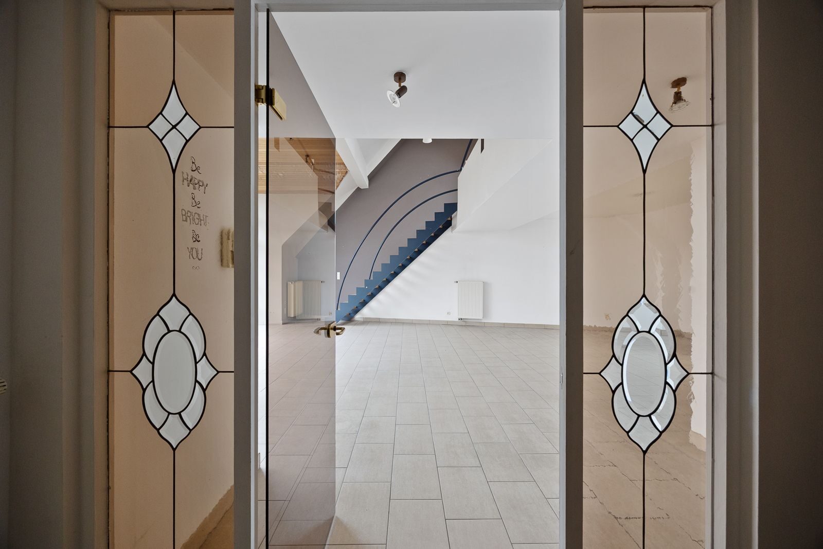 Op de derde en hoogste verdieping van een verzorgd gebouw bevindt zich dit zeer lichtrijk duplexappartement. Bij binnenkomst vind je een inkomhal met vestiairekast en gastentoilet. De ruime woonkamer baadt in het licht dankzij de grote ramen die uitgeven op een zuidgericht balkon. Het leefgedeelte sluit naadloos aan op de open, volledig ingerichte keuken. Aansluitend bevindt zich een eerste slaapkamer met eigen badkamer, waar ook aansluitingen voorzien zijn voor een wasmachine en droogkast.