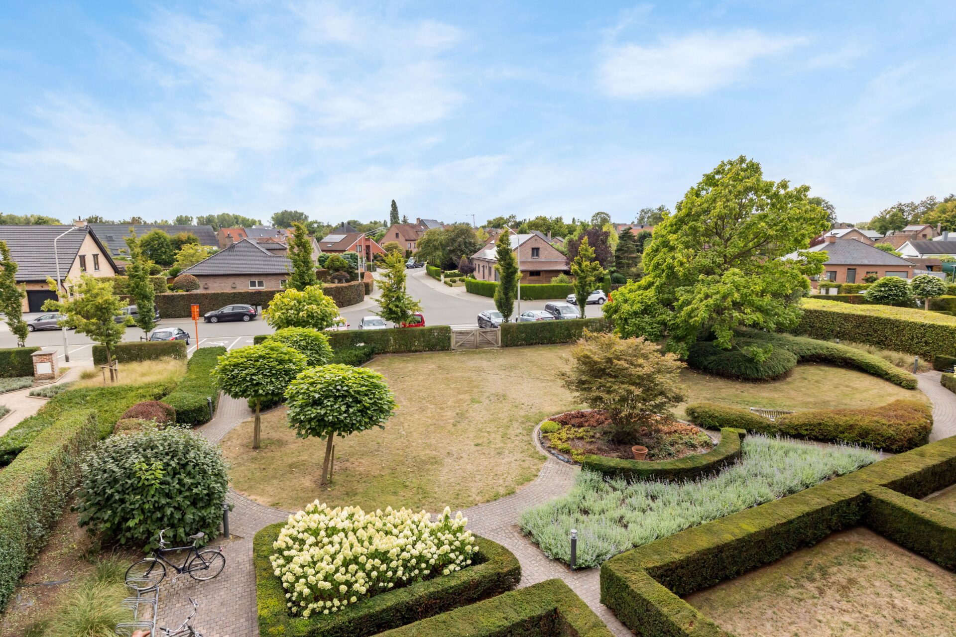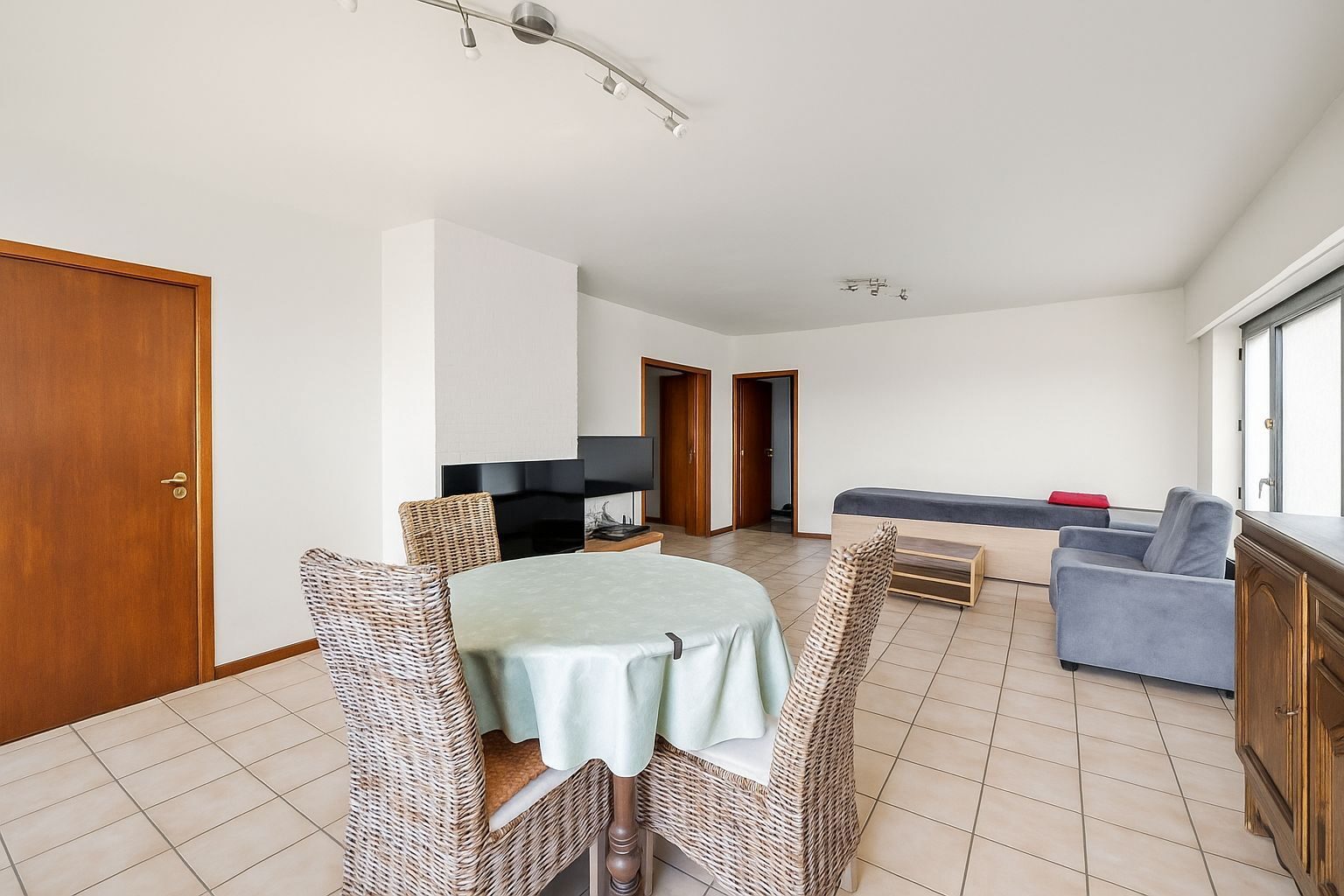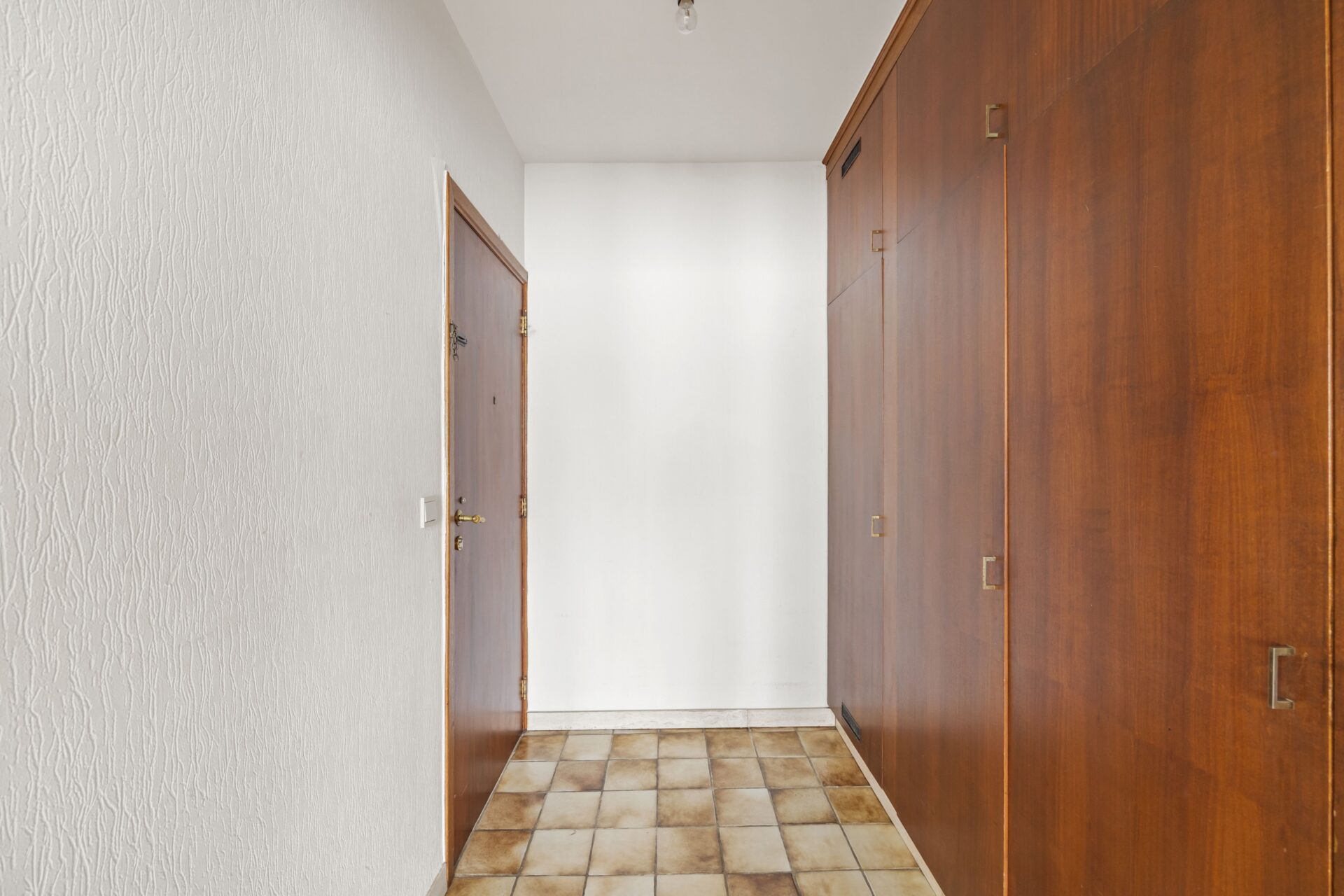U betreedt het appartement via de inkomhal met ingemaakte kasten. Deze leidt u naar de ruime en lichtrijke woonkamer die uitkijkt op de gezellige voortuin. Dankzij de grote raampartijen geniet u hier de hele dag door van een overvloed aan natuurlijk licht. De leefruimte geeft toegang tot het eerste terras.