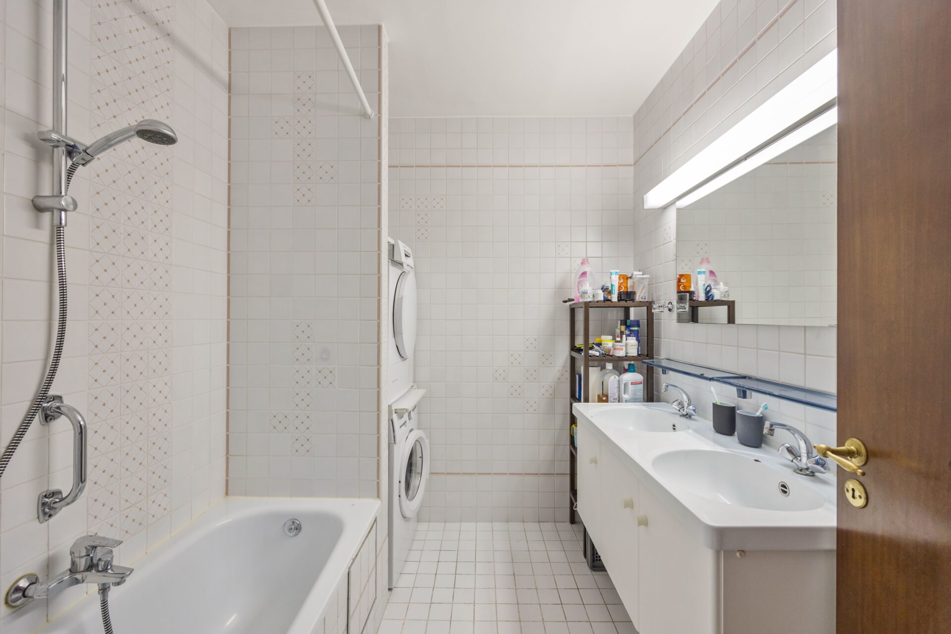 Het appartement beschikt over drie volwaardige slaapkamers, waarvan er twee toegang hebben tot het tweede terras. De badkamer is ingericht met een ligbad, dubbele wastafel en aansluitingen voor wasmachine en droogkast. Het toilet is apart, wat zorgt voor extra comfort.