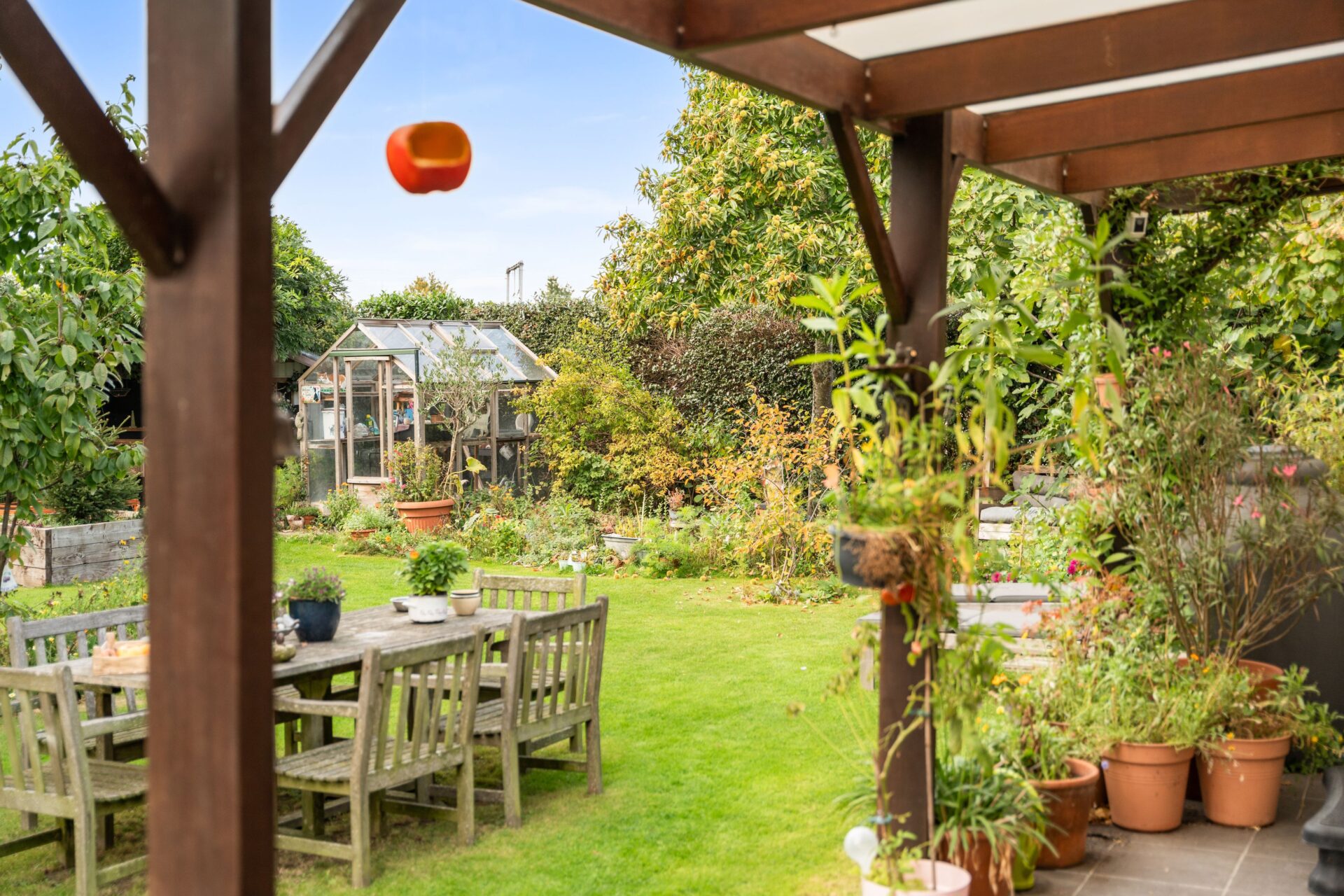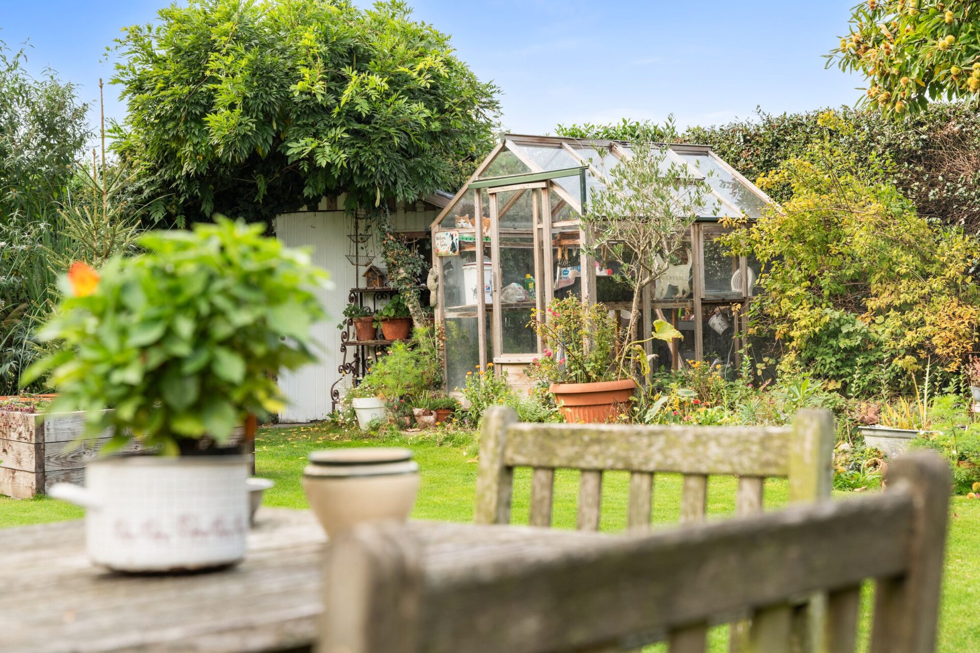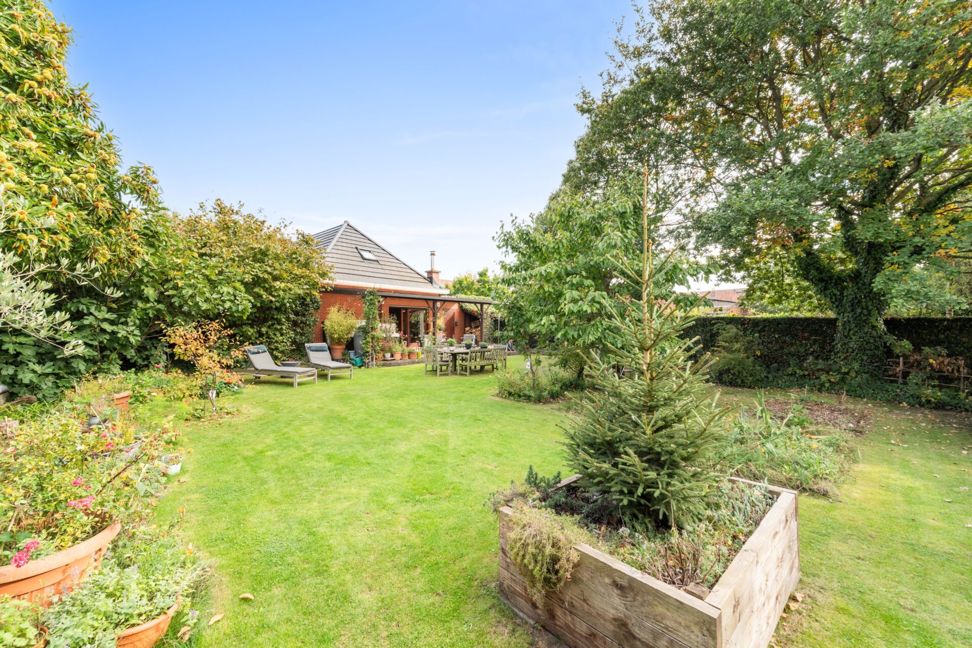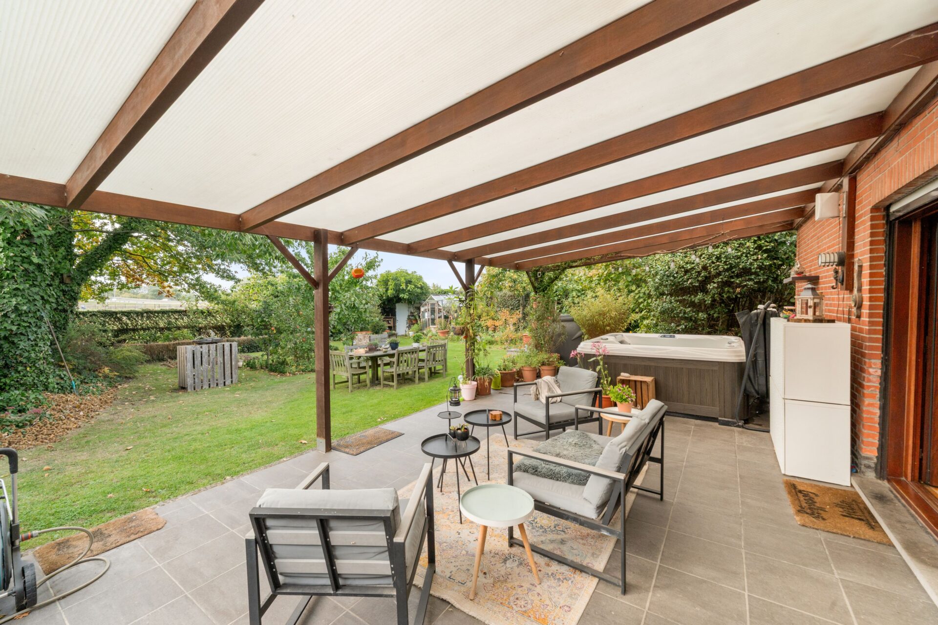 Achter de woning ligt een grote, groene en verzorgde tuin die volledige privacy biedt. Tussen het groen ontdekt u een serre voor wie houdt van tuinieren, én meerdere fruitbomen die elk seizoen zorgen voor natuurlijke charme en een smakelijke oogst. De tuin is een echte oase van rust.