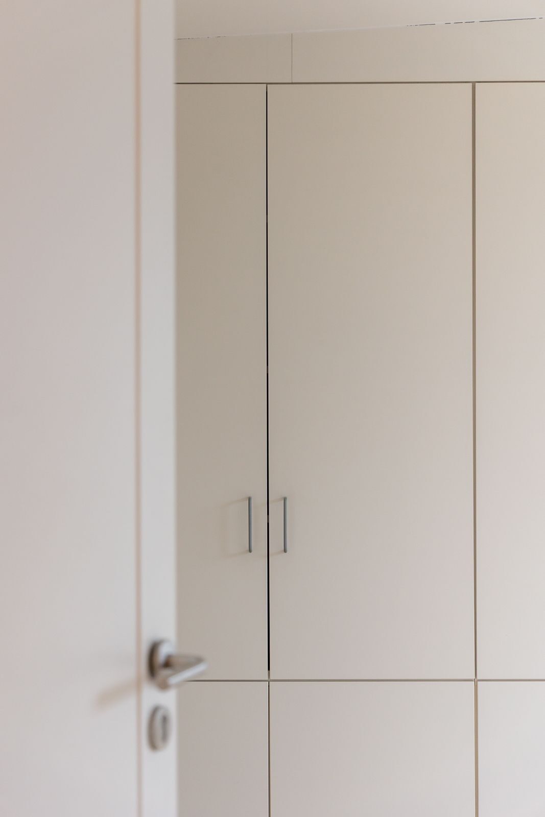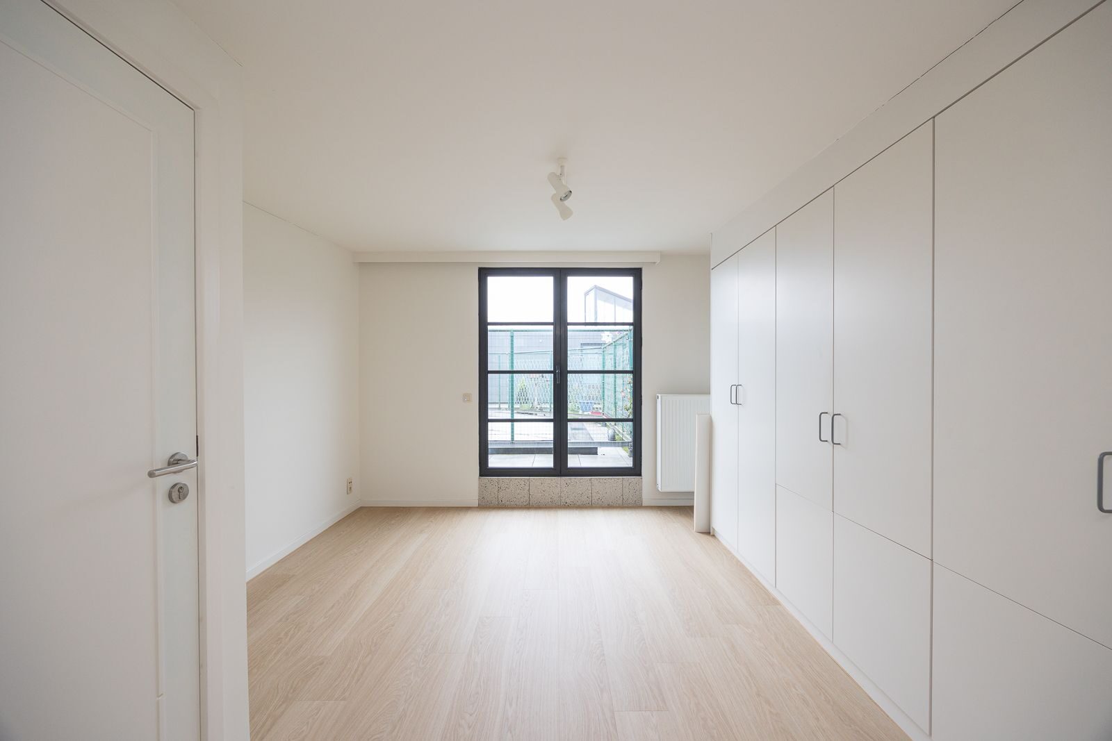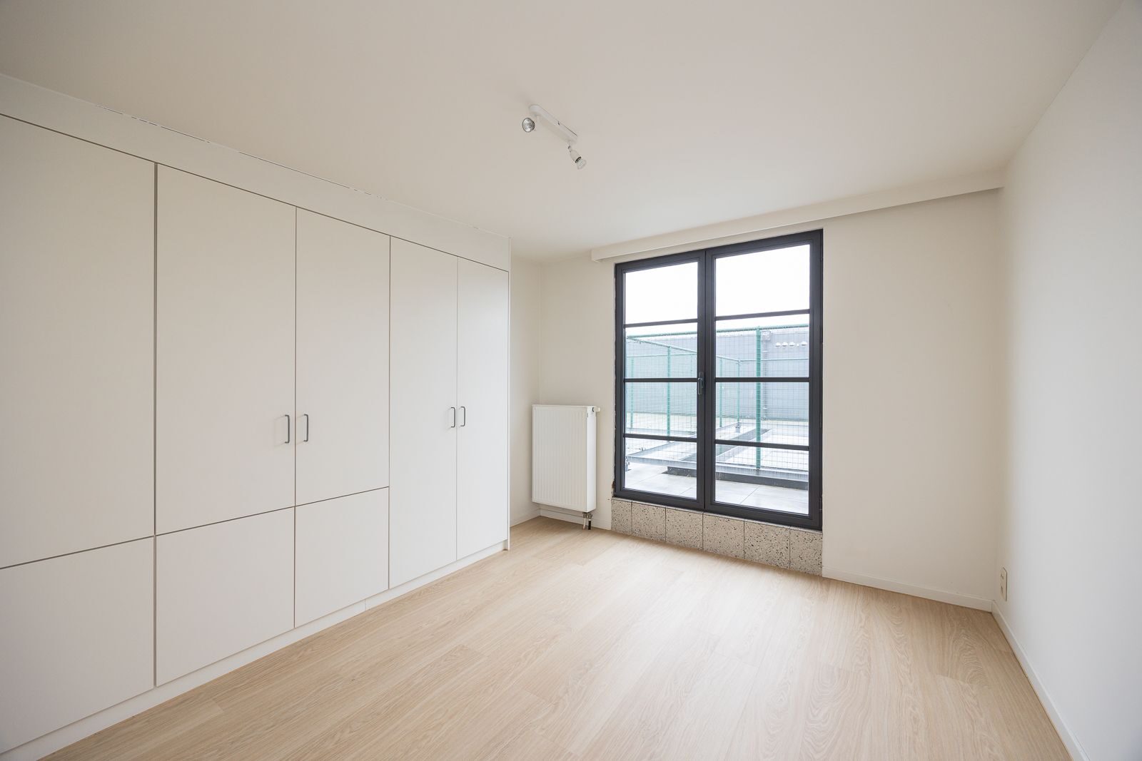 Via de nachthal bereikt u de twee slaapkamers. Beide slaapkamers geven toegang tot het dakterras van maar liefst 53 m² groot. De slaapkamers werden afgewerkt met degelijke op maat gemaakte kasten.