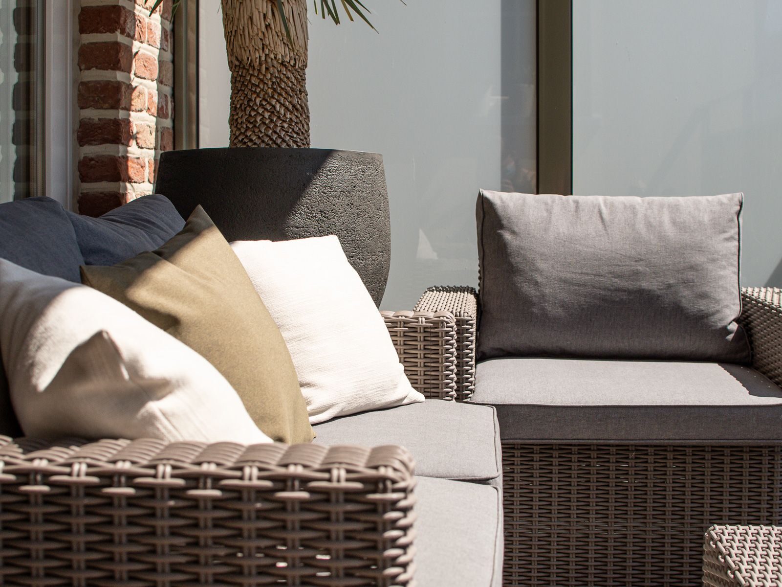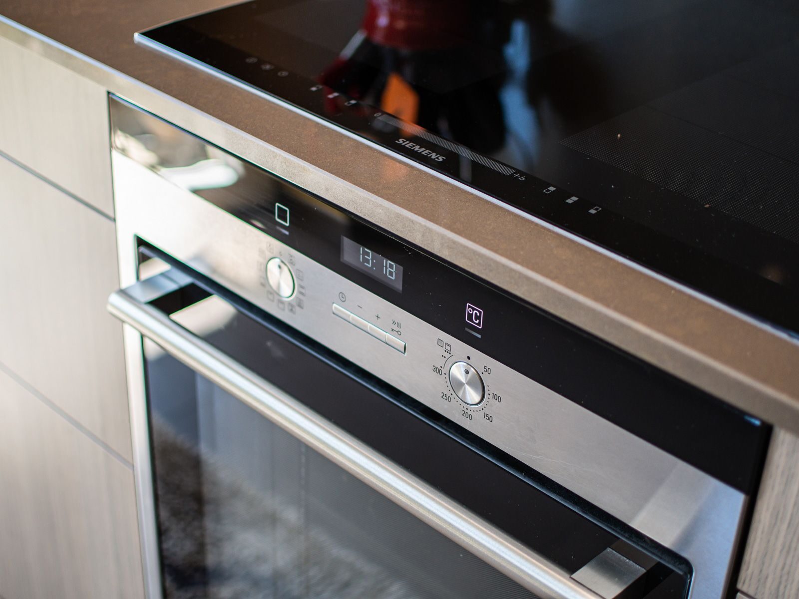 Via de inkomhal met gastentoilet kom je in de lichtrijke leefruimte met halfopen keuken. Deze duurzame keuken is voorzien van Siemens apparatuur en een mooi granieten werkblad.