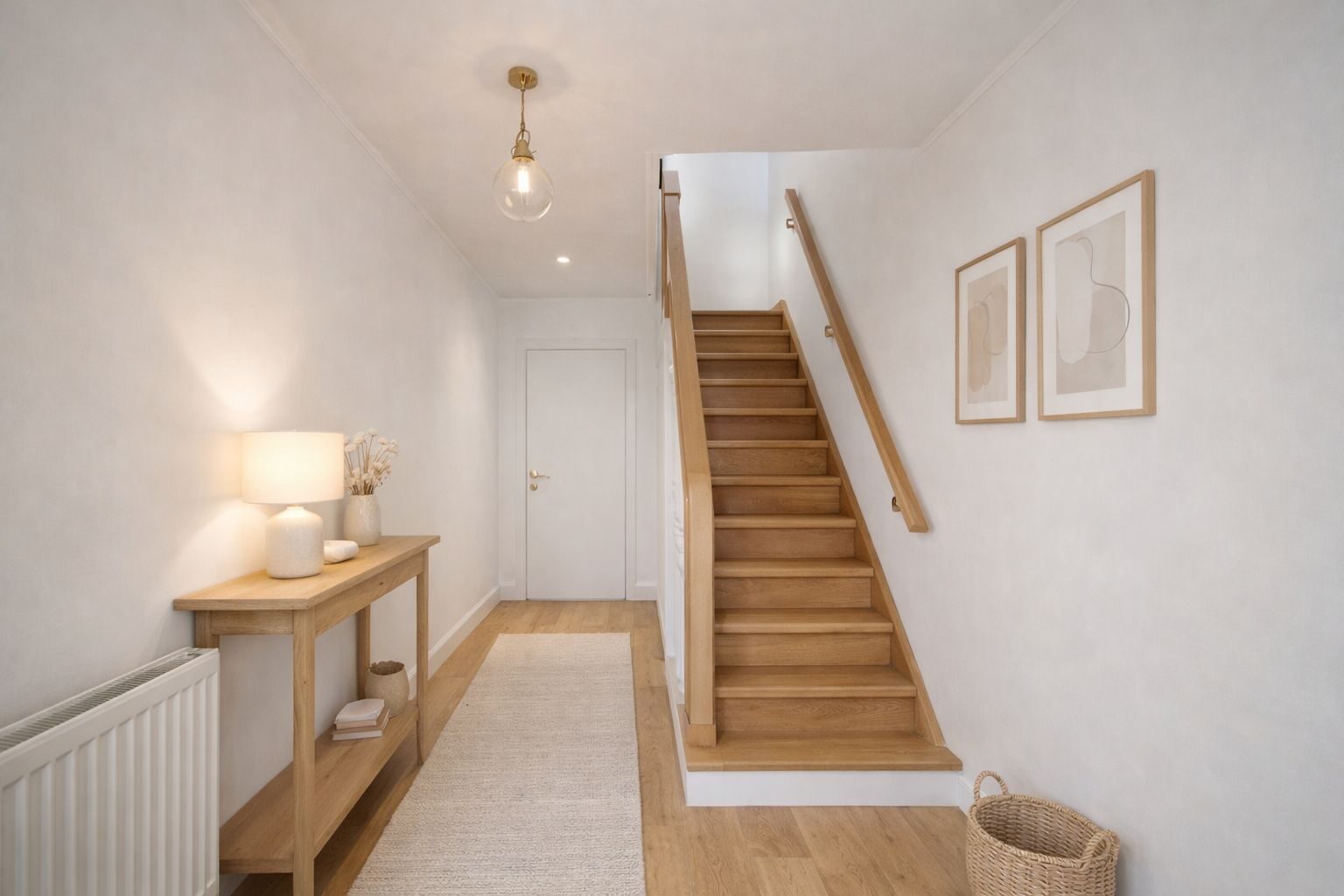 U komt binnen via de ruime inkomhal. Op het gelijkvloers vindt u de garage en wasplaats terug. Achteraan bevindt zich nog een aparte bergruimte.