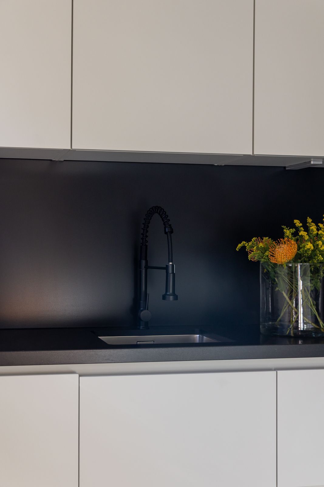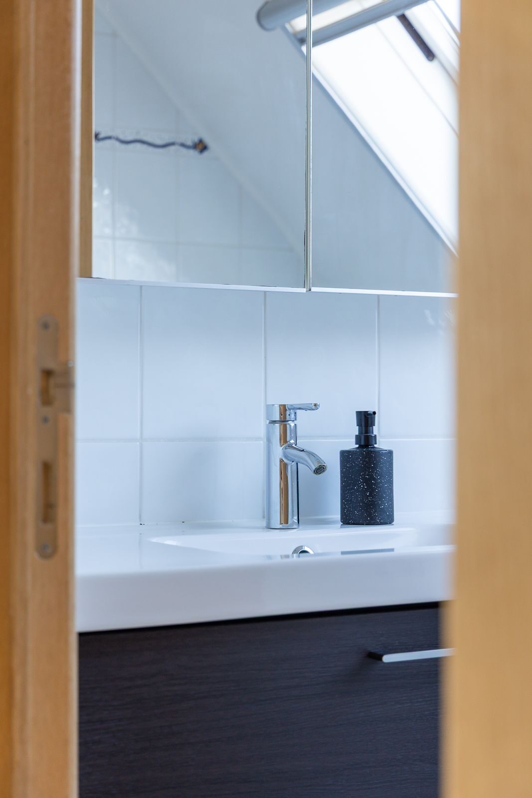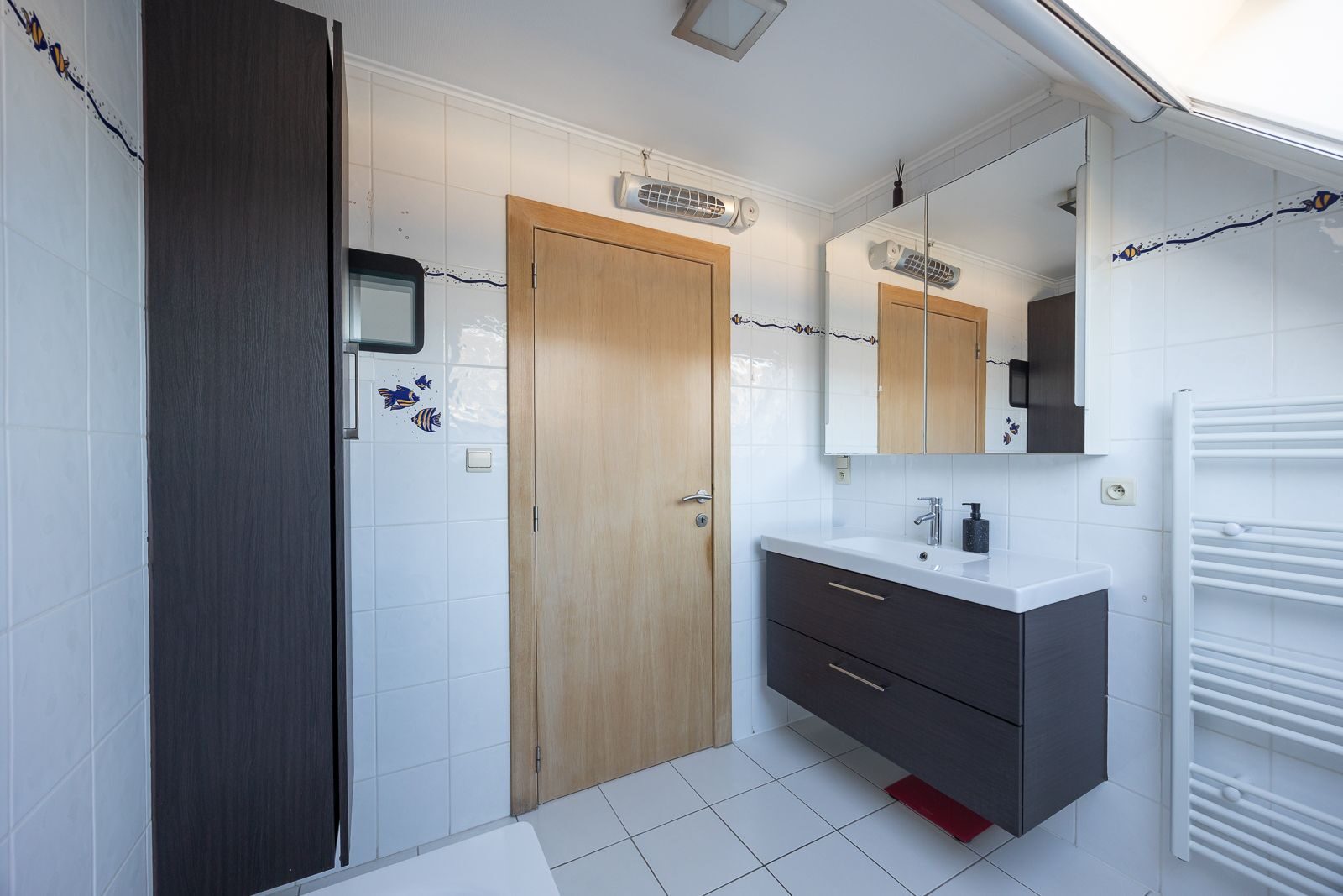 De kwalitatieve keuken werd volledig vernieuwd in 2023 en is uitgerust met een nieuwe inductiekookplaat, twee nieuwe ovens, een vaatwasser en voldoende opbergruimte. Aansluitend bevindt zich een praktische berging. Verder bereikt u de inpandige garage (27 m²) met aansluiting voor wasmachine en droogkast.