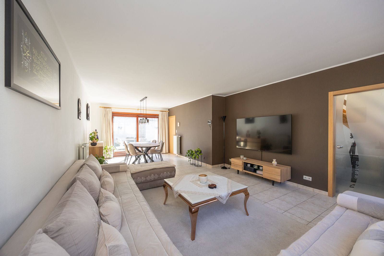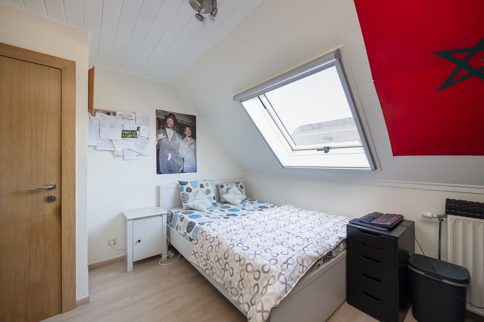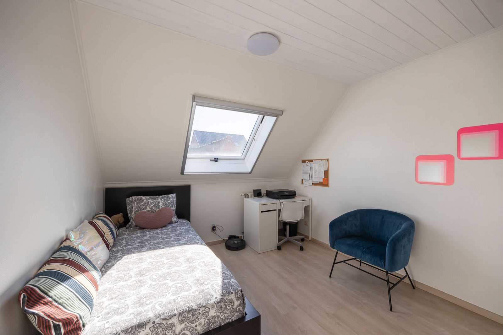 De inkomhal biedt toegang tot een lichtrijke en ruime leefruimte waar zit- en eetplaats naadloos in elkaar overlopen. Dankzij het grote schuifraam geniet u hier van veel natuurlijk licht en een mooi zicht op de tuin en het terras met zonnewering. De tuin geniet van veel privacy en is bovendien bereikbaar via de zij-ingang langs de oprit.